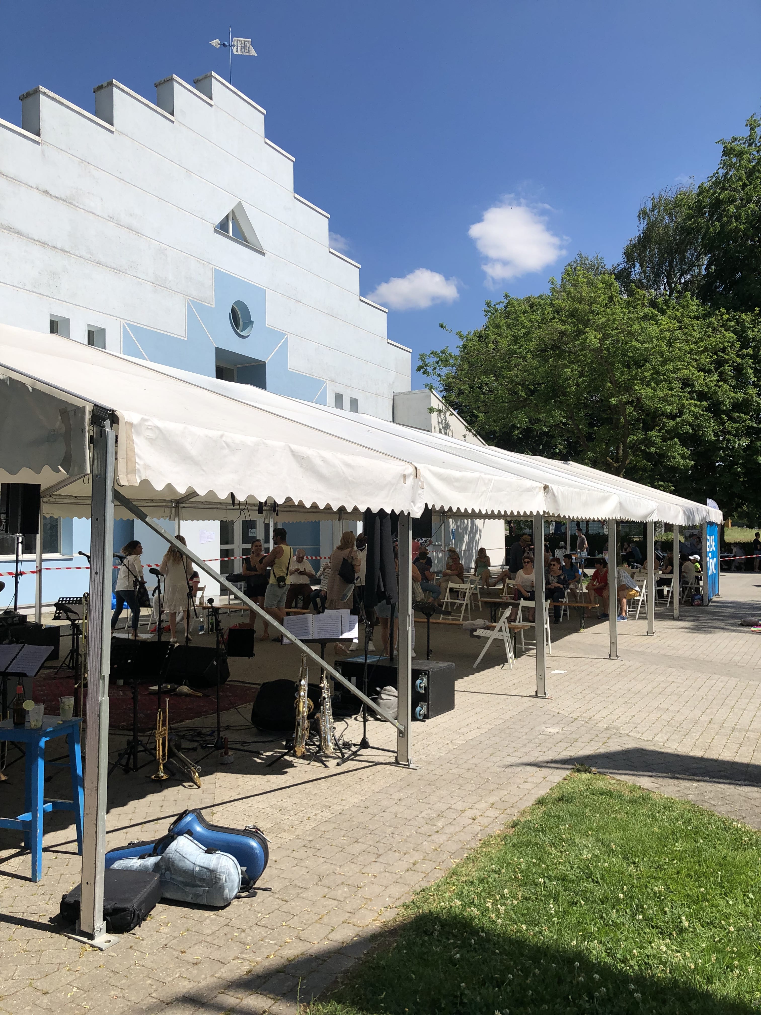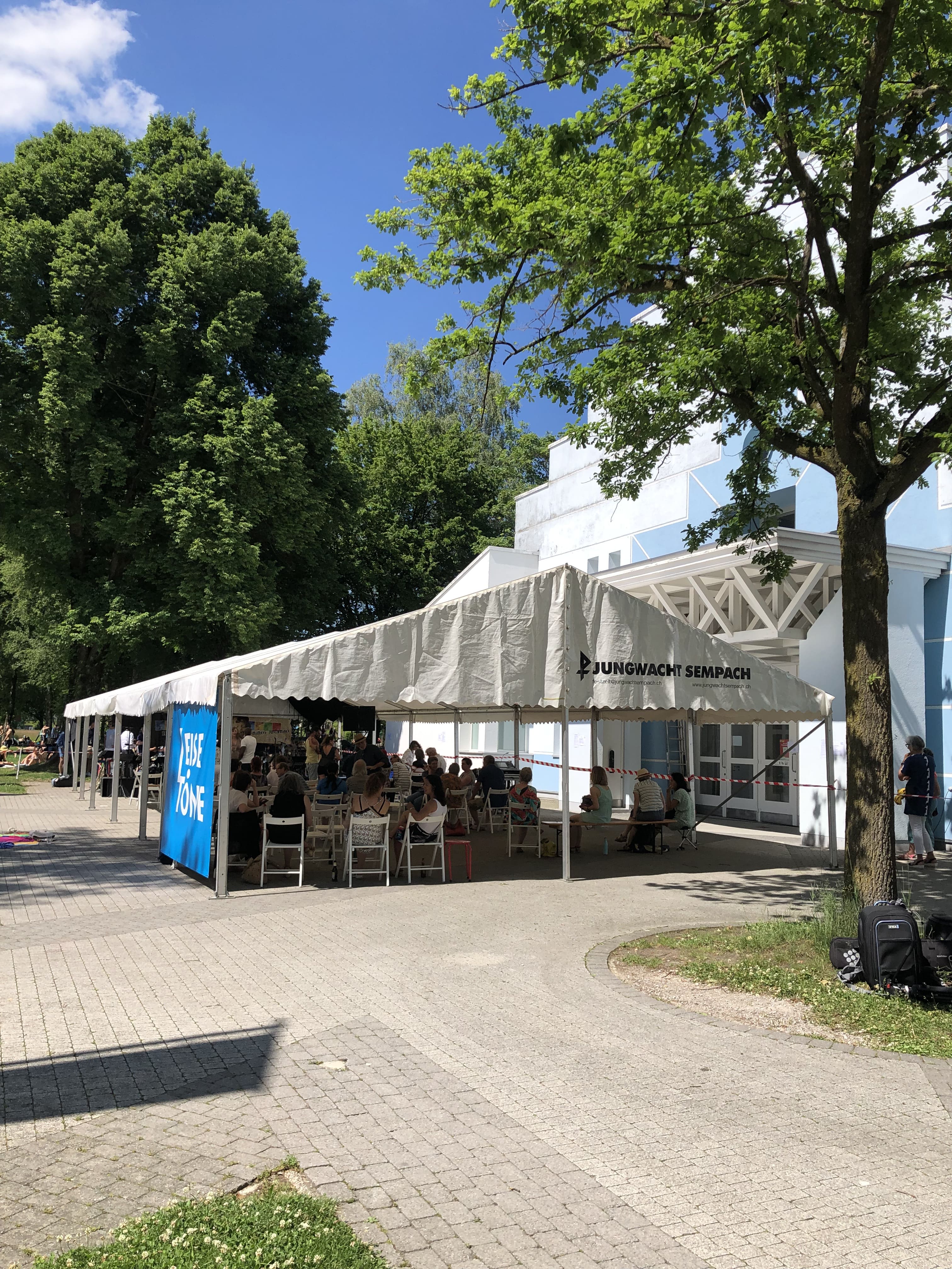 Bilder vom Festzelt (ohne Seitenwände im Bild) vom Leise Töne Event 2021 vor der Festhalle.